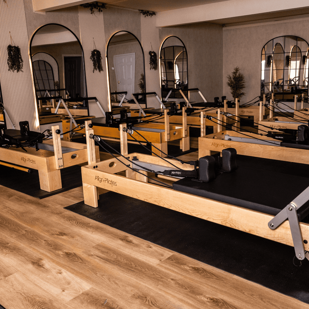 The Align-Pilates M8-Pro Pilates Reformer combines durable North American maple construction with a blend of classical styling and modern functionality. Designed for refined performance, it features a luxurious oversized carriage, 104 cm of smooth, silent travel, and extensive adjustability.