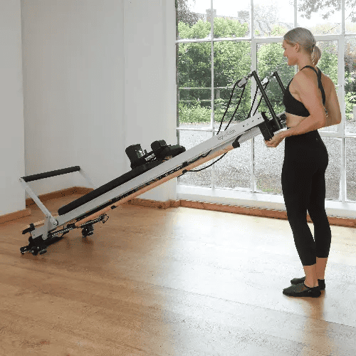 This is an incredibly compact Reformer that does not sacrifice quality or performance. You can free-stand the R8-Pro with an optional Jump Board, and it’s portable too with wheels to reposition or move, making it a great choice for a multi-purpose studio.