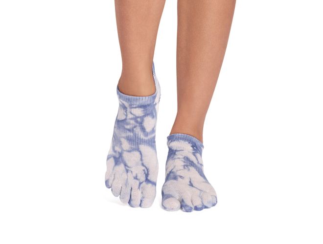 FULL TOE GRIP LOW RISE How low can you go? For all barefoot activities like barre, Pilates, yoga, and dance. Stick To Your Practice™. -Patented non-slip grip keeps your feet in place -Half toe design lets toes touch surface for a more barefoot experience -Five toe design allows toes to move and spread naturally -Hygienic alternative to bare feet -Arch support band gently lifts and supports -Fitted heel keeps sock in place to eliminate bunching and twisting -Made with organic cotton -Unisex sizing 90% Organic Cotton, 8% Spandex, 2% Other Fiber Printed: 58% Polyester, 32% Cotton, 8% Spandex, 2% Other Fiber. Machine washable. Wash inside out in gentle cycle. Line dry or low heat in dryer. No bleach or iron.