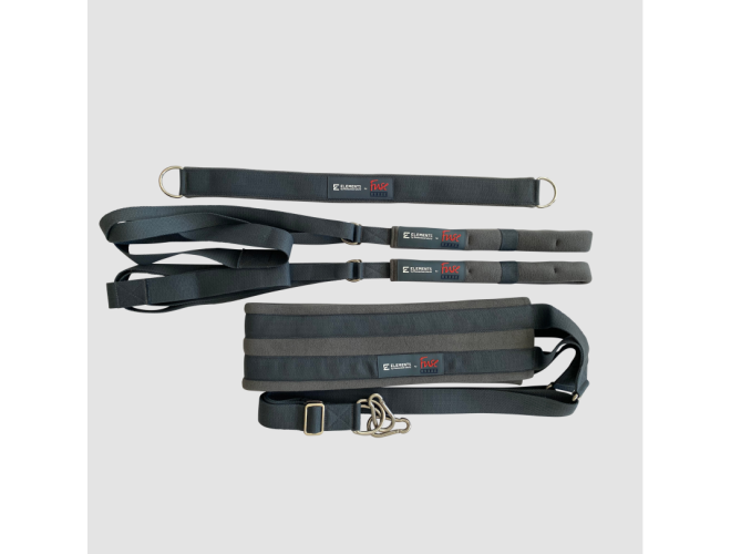 Fuse Ladder, Accessories Bundle. Take your exercises to the next level with the Yoga Sling that allows for inversions, supported stretches and strength work; Circus Straps that enable more inversions, rows, and creative exercises holding the strap with your hand or foot; and Connector Strap that provides a comfortable way to use two springs joined to make an extra heavy one.