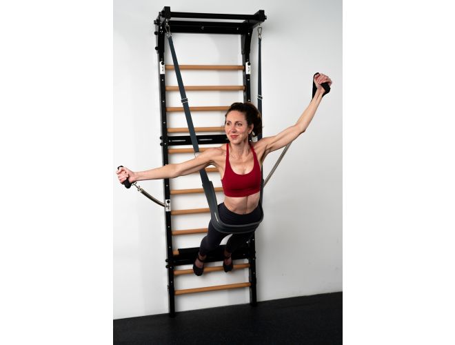This popular bundle includes everything you need to get started: the Fuse Ladder with springs, the push-through bar add-on that opens a whole world of classical and contemporary exercises, our yoga sling that allows for inversions and supported stretches and strength work, circus straps that enable more inversions as well as rows and creative exercises holding the strap with your hand or foot. The connection strap is a comfortable way to use two springs joined to make an extra heavy one.