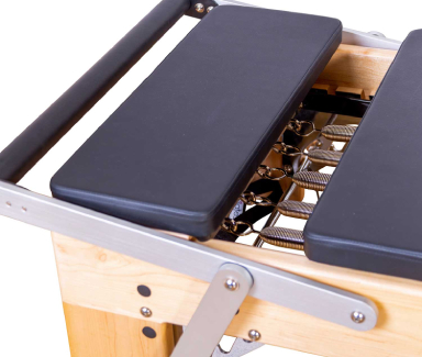 For those Pilates Professionals, Teachers and Students who prefer a wood reformer, the M8 is the perfect choice. It has the look of wood but the functionality of a modern reformer, including our Rapid Change (RC) Spring Bar, 8-wheel oversized carriage, and a removeable maple standing platform. The M8 can be converted to accept a Half Cadillac.