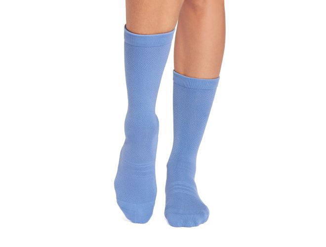 Push your practice with advanced grip technology. The Kai Tec Grip Sock features moisture-wicking TAVI Tec yarn, dual-surface stability grips, and breathable mesh jacquard in a secure crew height design.
