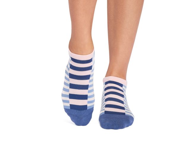 Savvy gives your sporty side a touch of sensual style. Her low rise design hugs below the ankle while Tavi's stellar grip sock pattern safely moves you through your barre, Pilates, and yoga classes. Express the heart of Tavi with Function that Flows into Fashion.