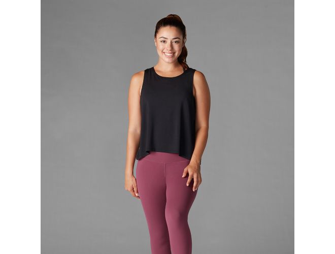 The Tavi Noir High Low Tank is universally liked for its perfect fit that flatters every "body". Featuring a shorter length in front and longer length in back with a soft, luxurious drape design.