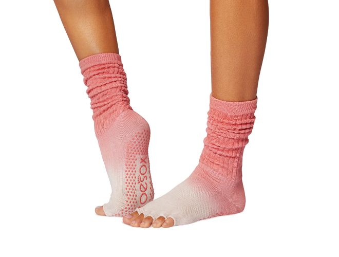 Toesox Slouch keep muscles warm and ready to perform. Features ToeSox patented non slip sole. Perfect for Yoga, Pilates and Barre. Made with super soft, organic cotton in a variety of great colors.